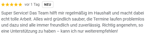 Seit Juni 2022 unterstützen wir mit Leidenschaft Menschen im Alltag – sei es nach einem Unfall, zur Entlastung älterer Menschen oder durch professionelle Unterhaltsreinigungen für Büros und andere Räumlichkeiten. Verlassen Sie sich auf unsere individuellen und zuverlässigen Reinigungsservices!